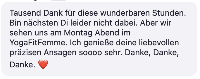 Jede FemmeBalanceYoga© Session wirkt wohltuend auf den Körper und verändert die Körperwahrnehmung, regeneriert und balanciert. Nach zwei Jahren und über 800 Kursbuchungen lassen sich auch die langfristigen positiven Auswirkungen der Praxis sehr gut einschätzen.